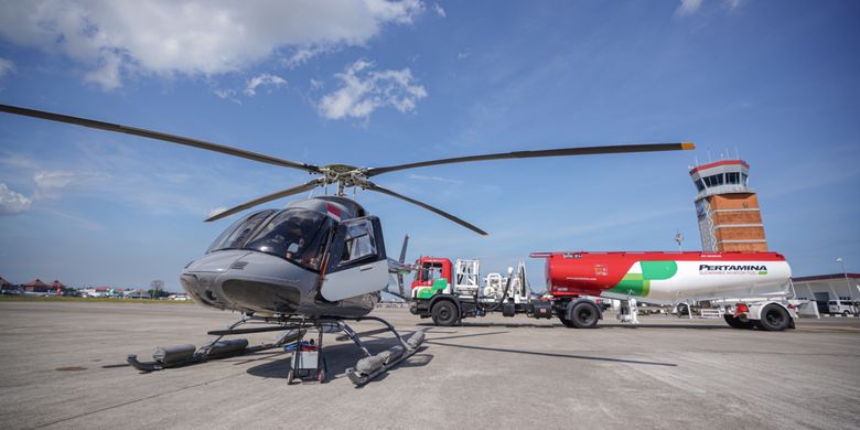 Dok.Pertamina Helikopter Bell 407 terlihat menjadi armada pertama di Indonesia yang menggunakan SAF pada perhelatan Bali International Airshow 2024 di Bandara Internasional I Gusti Ngurah Rai, Bali, Kamis (19/9/2024). Dekarbonisasi penerbangan nasional