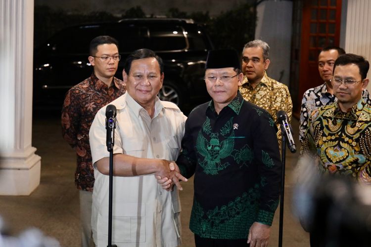 Presiden terpilih Prabowo Subianto menerima kunjungan dari Plt Ketua Umum PPP Muhamad Mardiono di Kertanegara, Jakarta Selatan, Kamis (15/8) malam. [279] url asal