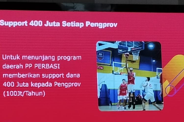 Dukungan insentif PP Perbasi sebesar 400 juta ke pengprov untuk pengembangan bola basket di daerah. [465] url asal