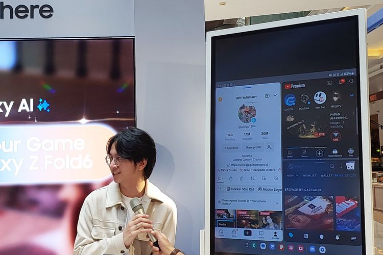 KOMPAS.com/Mikhaangelo Fabialdi Nurhapy Kiri: Ilham Indrawan selaku Mobile Experience Product Marketing, Samsung Electronics Indonesia Kanan: Afif Yulistian (Apiipp), Content Creator Gaming di acara Consumer Launch Samsung Galaxy Z Fold 6 dan Z Flip 6, Rabu (31/7/2024).Berikut ini alasan Afif menggunakan Samsung Galaxy Z Fold 6 dalam kehidupan sehari-harinya.