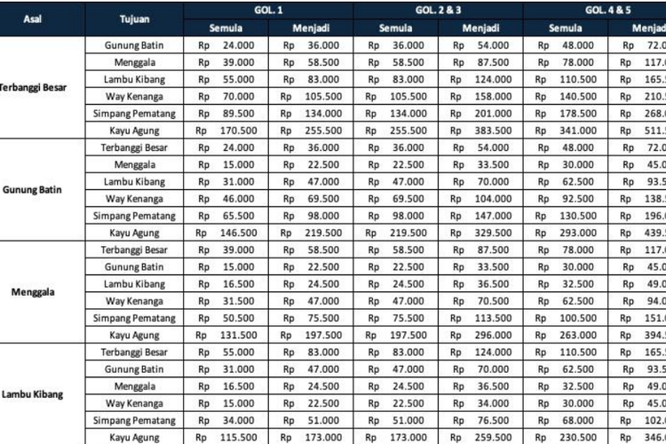 Hutama Karya segera melakukan penyesuaian tarif Tol Terbanggi Besar - Pematang Panggang – Kayu Agung. Halaman all?page=all [432] url asal
