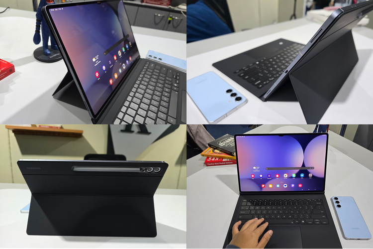 KOMPAS.com/ Galuh Putri Riyanto Samsung Galaxy Tab S10 Ultra ditambah dengan aksesori Book Cover Keyboard menjadi mirip laptop.Spesifikasi Galaxy Tab S10 Ultra