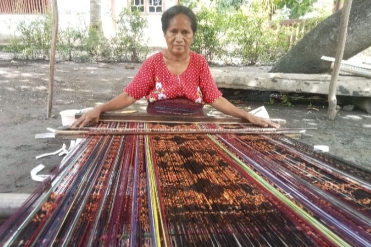 Serafinus Sandi Hayon Jehadu/Kompas.com Seorang ibu sedang menenun sarung motif Kabupaten SikkaKetua Sanggar Bliran Sina, Yosef Gervasius menyampaikan terima kasih atas dukungan dari pemerintah Kabupaten Sikka.